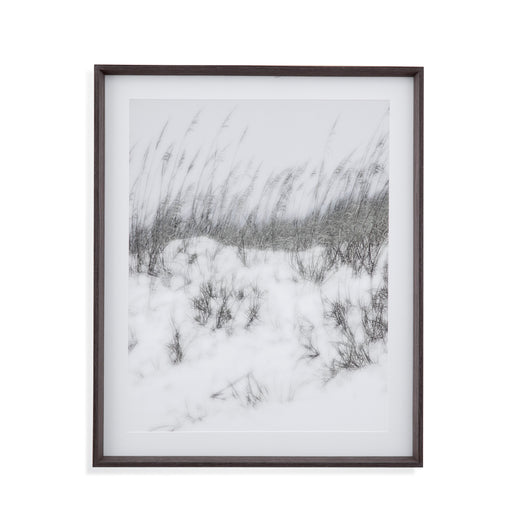 Bassett Mirror Co.Custom Lush Dunes III is a print with a white single mat and framed in a 3/4 dark chocolate wooden molding.