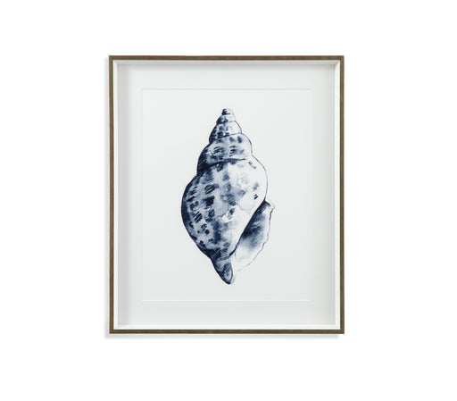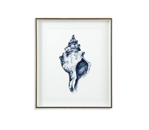 Bassett Mirror Co.Quiet Conch in Indigo III features fine art cotton rag paper with a single white mat and a 1" white molding with a champagen face.
