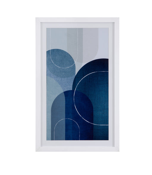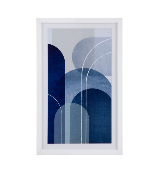 Bassett Mirror Co.Quiet Conch in Indigo IV features fine art cotton rag paper with a single white mat and a 1" white molding with a champagne face.