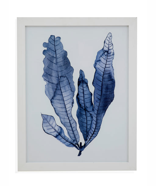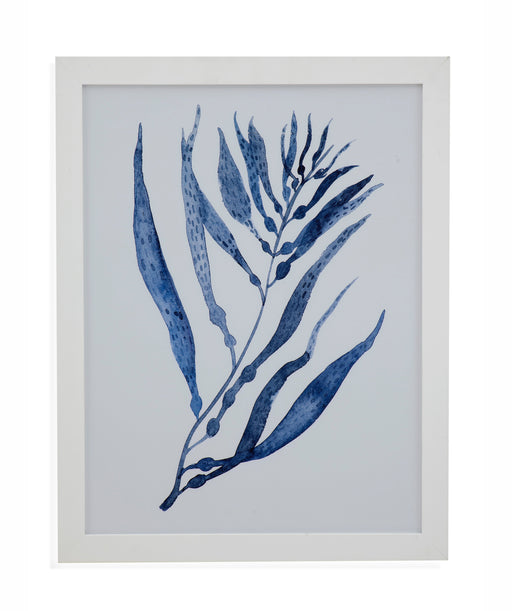 Bassett Mirror Co.Seaweed Under Water IV features blue image of seaweed on a white background in a simple white frame.