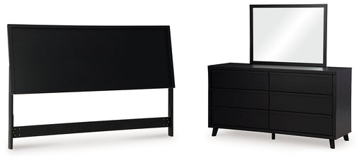 Juararo King/California King Panel Headboard Bed with Mirrored Dresser