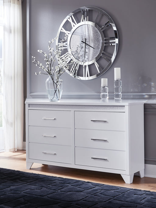 Signature Design by Ashley®This dresser is a showstopper, bringing a touch of modern glamour to your sanctuary. A sleek white finish and inset glitter accents create a sophis...