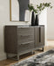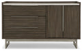 Details | Made with rubberwood, mango veneer and engineered wood, Complex grayish brown finish, White marble top with gallery on 3 sides, Metal base with low-sheen steel finish, Bar pulls with low-sheen steel finish, 3 drawers with fully finished interiors, dovetail construction and soft-close ball-bearing side glides, Double-door cabinet with adjustable shelf | |