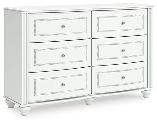 Signature Design by Ashley®Fit for a princess. This dresser’s crisp matte white finish pairs with charming elements like bun feet, crystal knobs and ornate beading—the perfec...