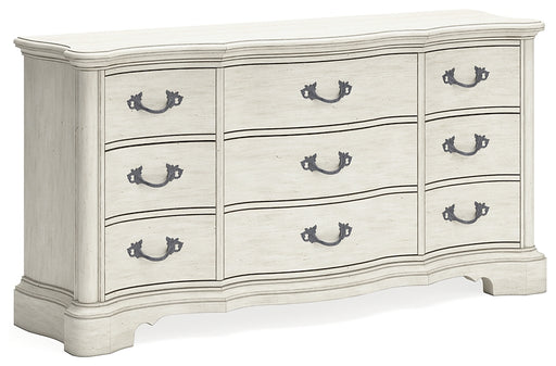 Signature Design by Ashley®Add a touch of romance to your bedroom with this dresser. Its antiqued white painted finish and serpentine-shaped silhouette details are the pictur...