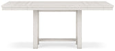 Details D642-32: Made with rubberwood solids, ash veneer and MDF substrates, Antiqued white finish with wood grain texture, Tabletop with planked effect, Two 12” extension leaves, Table extends by pulling both ends and dropping in leaf, Assembly required, D642-124: Made with wood, Antiqued white finish with wood grain texture, Foam cushion with polyester upholstery, Nailhead trim, X-back, Assembly required,