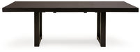Details D618-35: Made with hardwood solids, mango wood veneer and MDF substrate, Dark gray/brown wood-tone finish, Self-storing butterfly leaf, Seats up to 10, Assembly required, D618-01: Made with solid wood frame, Dark gray/brown wood-tone finish, Polyester upholstery, Next-Gen Nuvella™ is a performance fabric that is soft, easy to clean, stain-resistant and durable, Clean fabric with mild soap and water, let air dry; for stubborn stains, use a solution of 4 oz. bleach to 28 oz. water, Foam cushioned seat, Legs with adjustable levelers, Assembly required,