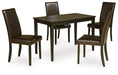 | Details | D250-02: Assembly required, Cushioned seat and back, Wood frame, Frame with black finish, D250-25: Made of veneers, wood and engineered wood, Seats 4, Dark brown finish, Assembly required, Table width: 23.75", Table depth: 45", Table height: 29.75", | |