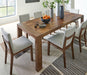 | Details | D496-01: Made with solid wood frame, Brown wood-tone finish, Foam seat and back cushions, Light beige polyester upholstery, Next-Gen Nuvella is a performance fabric that is soft, easy to clean, stain-resistant and durable, Clean fabric with mild soap and water, let air dry; for stubborn stains, use a solution of 4 oz. bleach to 28 oz. water, Assembly required, D496-25: Made with hardwood solids, butcher block mango wood veneer and MDF substrates, Brown wood-tone finish, Seats up to 8, Dining chairs sold separately, Assembly required, | |
