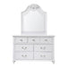 The Alana 7-Drawer Dresser & Mirror is the perfect addition to your little ones bedroom! This horizontal dresser comes with seven, spacious drawers; perfect for keeping all of your belongings neatly stored away. The four bottom dressers are the perfect size for storing away more bulkier items, like sweaters. The portrait mirror features an intricate molding at the top, adding extra style to this already chic set. The crystal-like drawer handles and knobs pair beautifully with the clean, white finish. Bevel edges and cabriole feet complete the look of this transitional design.