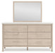 Details | Dresser and mirror, Made with engineered wood (MDF/particleboard/plywood) for the right balance of affordability and durability, Smooth, light finish with replicated oak grain, Replicated marble top , Handles with champagne colored finish, 6 smooth-gliding drawers, Round post legs, Drawer interiors are lined with a faux linen laminate for a clean, finished look, Safety is a top priority, clothing storage units are designed to meet the most current standard for stability, ASTM F 2057 (ASTM International), Drawers extend out to accommodate maximum access to drawer interior while maintaining safety | |