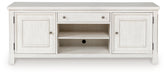 Details | Made with hardwood solids, ash veneer and MDF substrates, Antiqued white finish with wood grain texture, Round metal knobs with aged pewter-tone finish, 2 cabinets, each with adjustable shelf, Open cabinet with adjustable shelf, Smooth-gliding drawer with fully finished interior, dovetail construction and heavy-duty ball-bearing side glides, Cutouts for cord management, Assembly required | |