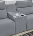 Details | Includes 5 modular pieces: left-arm facing power recliner, armless chair, 2 consoles, and right-arm facing power recliner, "Left-arm" and "right-arm" describe the position of the arm when you face the piece, Versatile modular pieces fit together in a variety of configurations, One-touch power control with adjustable positions, Easy View™ adjustable headrest and zero-draw USB port, Zero-draw technology only consumes power when the USB receptacle is in use, Corner-blocked frame with metal reinforced seat, Attached back and seat cushions; high-quality foam cushions wrapped in poly fiber, Polyester upholstery; Next-Gen Nuvella™ is a family-friendly fabric that is soft, easy to clean, stain-resistant and durable, Clean fabric with mild soap and water, let air dry; for stubborn stains, use a solution of 4 oz. bleach to 28 oz. water, Throw pillows with easy-to-remove zippered covers for machine washing; pillows with soft polyfill, Console with plexiglass top and 2 cup holders, Zero wall recliner design requires minimal space between wall and chair back, Power cord included; UL Listed | |