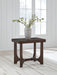 Master the art of casual contemporary design with this end table. Its softly rounded wood frame top pairs perfectly with an eye-catching double wishbone base and a rich brown finish for a decidedly here and now vibe. Talk about the ideal spot for drinks, decor and more.