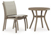 Craft a chic outdoor seating area with this table and chair set. Outfitted in contemporary neutral hues, it's an ideal spot for sipping drinks poolside or relaxing on the porch. Sturdy aluminum construction and sling seating round out the set with both durability and comfort.