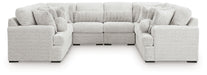 Details | Includes 8 modular pieces: left-arm facing corner chair, 4 armless chairs, 2 wedges and right-arm facing corner chair, "Left-arm" and "right-arm" describe the position of the arm when you face the piece, Modular pieces can float anywhere; sides are finished (with no connectors); versatile modular pieces fit together in a variety of configurations, Corner-blocked frame, Loose seat and reversible back cushions, High-resiliency foam cushions wrapped in poly fiber, Includes throw pillows, accent pillows, decorative round pillows and lumbar pillows; pillows with soft polyfill, Polyester upholstery, Low-profile legs with faux wood finish , Platform foundation system resists sagging 3x better than spring system after 20,000 testing cycles by providing more even support, Smooth platform foundation maintains tight, wrinkle-free look without dips or sags that can occur over time with sinuous spring foundations | |