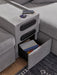 Details | Includes 6 modular pieces: left-arm facing corner chaise, 3 armless chairs, wedge and audio console with storage, "Left-arm" and "right-arm" describe the position of the arm when you face the piece, Modular pieces can float anywhere; sides are finished (with no connectors), Corner-blocked frame; loose reversible seat and back cushions; high-quality foam cushions wrapped in poly fiber, Throw pillows included; soft polyfill, Polyester upholstery, Next-Gen Nuvella™ is a family-friendly fabric that is soft, easy to clean, stain-resistant and durable; easy-to-remove zippered covers for machine washing, Clean fabric with mild soap and water, let air dry; for stubborn stains, use a solution of 4 oz. bleach to 28 oz. water, Non-skid legs, Console with removable plexiglass top; pull-out drawer for storage; built-in audio sound system with wireless connectivity; audio controls located on console; USB charging, Power cord included; UL Listed, Platform foundation system resists sagging 3x better than spring system after 20,000 testing cycles by providing more even support, Smooth platform foundation maintains tight, wrinkle-free look without dips or sags that can occur over time with sinuous spring foundations | |
