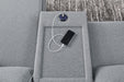 Details | Includes 6 modular pieces: left-arm facing power reclining back chaise, power armless recliner, armless chair, console, wedge and right-arm facing power recliner, "Left-arm" and "right-arm" describe the position of the arm when you face the piece, Versatile modular pieces fit together in a variety of configurations, One-touch power control with adjustable positions, Easy View™ adjustable headrest and zero-draw USB port, Zero-draw technology only consumes power when the USB receptacle is in use, Corner-blocked frame with metal reinforced seat, Attached seat and back cushions; high-quality foam cushions wrapped in poly fiber, Polyester upholstery; Next-Gen Nuvella™ is a family-friendly fabric that is soft, easy to clean, stain-resistant and durable, Clean fabric with mild soap and water, let air dry; for stubborn stains, use a solution of 4 oz. bleach to 28 oz. water, Throw pillows with easy-to-remove zippered covers for machine washing; pillows with soft polyfill, Console with plexiglass top and 2 cup holders, Zero wall recliner design requires minimal space between wall and chair back, Power cord included; UL Listed | |
