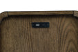 Details | Made with wood, veneer and engineered wood, Warm brown finish, Curved edge details, 2 drawers, Pull-out tray, USB-A and USB-C charging ports, Power cord included; UL Listed | |