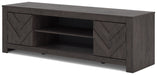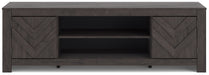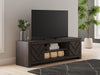 This TV stand embraces a classically charming aesthetic and repurposes it for modern living. Its dark charcoal finish to your love of vintage character, while the chic chevron pattern is effortlessly on trend. And with hidden storage behind the doors, your media accessories stay tucked away in style.