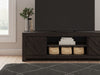 Details | Made with engineered wood (MDF/particleboard/plywood) and decorative laminate for the right balance of affordability and durability, Dark charcoal finish over replicated oak grain, Decorative laminate replicates natural or man-made material surfaces with consistent color, pattern and texture, Integrated door pulls, 2 cabinets, each with an adjustable shelf, Open center shelf, Compatible with the W100-703 fireplace insert (sold separately), Assembly required | |