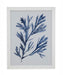 Seaweed Under Water I features blue image of seaweed on a white background in a simple white frame.