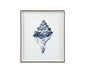 Quiet Conch in Indigo III features fine art cotton rag paper with a single white mat and a 1" white molding with a champagen face.