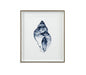 Quiet Conch in Indigo I features fine art cotton rag paper with a single white mat and a 1" white molding with a champagne face.