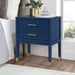 Organize your space with the sophisticated Bruno Side Table. Expertly crafted in rubberwood, MDF, and accented with gold metal hardware for the bold look you deserve. The Bruno Side Table features two spacious drawers for storing your favorite items at arm's reach. Keep your devices always charge with the built-in USB port. Clean-lined frame for effortless modern aesthetic, perfect next to your bedside or modern sofa. Bring a chic and modern feel to any room when you add the Bruno Side Table.
