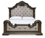 Details B947B5: Includes upholstered panel headboard, upholstered panel footboard and panel rails, Made with hardwood solids, oak and ash swirl veneers, MDF substrates and cast resin components, Dark brown finish, Polyester upholstery with button tufting, Foundation/box spring required, sold separately, Mattress available, sold separately, Assembly required, B947B1: Includes dresser and mirror, Made with hardwood solids, oak and ash swirl veneers, MDF substrates and cast resin components, Dark brown finish, 6 smooth-gliding drawers with dovetail construction (top drawer felt lined), Drawer pulls with antiqued goldtone finish, Mirror attaches to back of dresser,