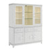 Enrich your dining room with the showstopping style of the Diedra Server and Hutch. Accented with LED lighting, glass door fronts, acrylic knobs, and rhinestone detailing, the exuberance of glam style is woven into every inch of these stunning pieces. Adjustable shelving in both the hutch and server allows you to customize your storage and display space, while felt-lined top drawers in the server are included to protect the furniture and its contents alike. Made with solid wood framing and finished in a quality birch veneer, the Diedra Server and Hutch is the perfect statement of quality and style.