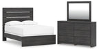 | Details | PCB2108B12: Includes panel headboard/footboard and rails, Made with engineered wood (MDF/particleboard/plywood) and decorative laminate for the right balance of affordability and durability , Charcoal finish over replicated oak grain with authentic touch, Decorative laminate replicates natural or man-made material surfaces with consistent color, pattern and texture, Foundation/box spring required, sold separately , Mattress available, sold separately, Minor assembly required, PCB2108B1: Includes dresser and mirror, Made with engineered wood (MDF/particleboard/plywood) and decorative laminate for the right balance of affordability and durability , Charcoal finish over replicated oak grain with authentic touch, Decorative laminate replicates natural or man-made material surfaces with consistent color, pattern and texture, Large-scale dark colored handles, 6 smooth-gliding drawers, Drawer interiors are lined with a faux linen laminate for a clean, finished look , Mirror attaches to back of dresser; can also be mounted on wall horizontally or vertically, Safety is a top priority, clothing storage units are designed to meet the most current standard for stability, ASTM F 2057 (ASTM International), Drawers extend out to accommodate maximum access to drawer interior while maintaining safety, Minor assembly required, | |