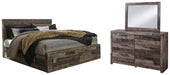 Derekson King Panel Bed with 4 Storage Drawers with Mirrored Dresser
