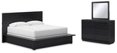 Londer King Panel Bed with Mirrored Dresser