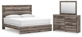 | Details | PCB2405B8: Includes panel headboard/footboard and rails, Made with engineered wood (MDF/particleboard/plywood) and decorative laminate for the right balance of affordability and durability , Weathered gray finish over replicated oak grain, Decorative laminate replicates natural or man-made material surfaces with consistent color, pattern and texture, Foundation/box spring required, sold separately , Mattress available, sold separately, Minor assembly required, PCB2405B1: Includes dresser and mirror, Made with engineered wood (MDF/particleboard/plywood) and decorative laminate for the right balance of affordability and durability , Weathered gray finish over replicated oak grain, Decorative laminate replicates natural or man-made material surfaces with consistent color, pattern and texture, Large-scale dark colored handles, 6 smooth-gliding drawers, Drawer interiors are lined with a faux linen laminate for a clean, finished look , Safety is a top priority, clothing storage units are designed to meet the most current standard for stability, ASTM F 2057 (ASTM International), Drawers extend out to accommodate maximum access to drawer interior while maintaining safety, Mirror attaches to back of dresser; can also be mounted on wall horizontally or vertically , Minor assembly required, | |