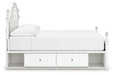 Fit for a princess. This full upholstered panel storage bed’s crisp matte white finish pairs with charming ornate beading details and sumptuous button-tufted upholstery—perfect for your girly girl. Spacious storage drawers neatly tuck away bedroom essentials, while decorative ball tops and multicolored LED lighting in the headboard are the crowning touches to make your little one feel like royalty.