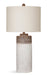 The Lamar Table Lamp exudes a rustic charm with its white and beige color palette, offering a touch of countryside serenity. Crafted from sturdy cement for a grounded, earthy feel, it's topped with a crisp white linen drum shade that casts a welcoming glow.