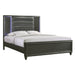 Moonstone Panel Bed is a one of a kind addition for your bedroom. Upholstered in polyethylene and consisting of textural design throughout. Crafted of solid woods and veneers. Finished in a transitional, mountain gray . Features mood lightening in headboard to create a beautiful ambiance. Perfect for contemporary or modern bedroom aesthetics.