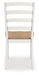 Details | Made with solid wood frame, Seat with light butcher block oak veneer, Frame with antiqued white finish, Ladderback design, Contoured seat for added comfort, Assembly required | |