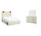Cambeck Panel Bed With 2 Storage Drawers With Mirrored Dresser