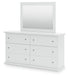 | Details | B139B43: Includes panel headboard/footboard and rails, Made with engineered wood (MDF/particleboard/plywood) and decorative laminate for the right balance of affordability and durability, Replicated solid white paint, Decorative laminate replicates natural or man-made material surfaces with consistent color, pattern and texture, Foundation/box spring required, sold separately, Mattress available, sold separately, Assembly required, B139B40: Includes dresser and mirror, Made of engineered wood (MDF/particleboard), Knobs with pewter-tone finish, Scalloped moulding, 6 smooth-operating drawers, Includes tipover restraint device, Mirror attaches to back of dresser; can also be mounted on wall horizontally or vertically, Safety is a top priority, clothing storage units are designed to meet the most current standard for stability, ASTM F 2057 (ASTM International), Drawers extend out to accommodate maximum access to drawer interior while maintaining safety, | |