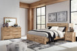 Details B1050B4: Includes queen panel headboard, storage footboard, rails and roll slats, Made with engineered wood (MDF/particleboard/plywood) and decorative laminate for the right balance of affordability and durability, Golden rustic finish over replicated oak grain with authentic touch, Decorative laminate replicates natural or man-made material surfaces with consistent color, pattern and texture, 2 smooth-gliding storage drawers, Drawer interiors are lined with a faux linen laminate for a clean, finished look, Bed does not require additional foundation/box spring; accommodates most zero clearance adjustable bases with the addition of a bunkie board, Mattress available, sold separately, Assembly required, B1050B1: Includes dresser and mirror, Made with engineered wood (MDF/particleboard/plywood) and decorative laminate for the right balance of affordability and durability, Golden rustic finish over replicated oak grain with authentic touch, Decorative laminate replicates natural or man-made material surfaces with consistent color, pattern and texture, Handles in antiqued gunmetal finish, 6 smooth-gliding drawers, Drawer interiors are lined with a faux linen laminate for a clean, finished look, Framed front and pilasters, Mirror attaches to back of dresser; can also be mounted on wall horizontally or vertically, Safety is a top priority, clothing storage units are designed to meet the most current standard for stability, ASTM F 2057 (ASTM International), Drawers extend out to accommodate maximum access to drawer interior while maintaining safety, Assembly required,