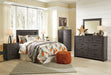 Details B249-67: Hardware not included, Made with engineered wood (MDF/particleboard/plywood) and decorative laminate for the right balance of affordability and durability, Dark charcoal finish over replicated oak grain, ¼" bolts are needed to attach headboard to existing bed frame, Bolt length depends on thickness of your bed frame, Assembly required, B249B1: Includes dresser and mirror, Made with engineered wood and decorative laminate, Dark charcoal finish over replicated oak grain, 7 smooth-gliding drawers; 3 drawer sizes, Linear pulls with dark pewter-tone finish, Mirror attaches to back of dresser, Safety is a top priority, clothing storage units are designed to meet the most current standard for stability, ASTM F 2057 (ASTM International), Drawers extend out to accommodate maximum access to drawer interior while maintaining safety , Assembly required,