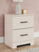 Details Made with engineered wood (MDF/particleboard/plywood) and decorative laminate for the right balance of affordability and durability, White finish with subtle replicated wood grain, Antiqued pewter-tone handles, 2 smooth-gliding drawers