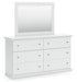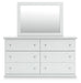 Details B139B41: Includes panel headboard/footboard and rails, Made with engineered wood (MDF/particleboard/plywood) and decorative laminate for the right balance of affordability and durability, Replicated solid white paint, Decorative laminate replicates natural or man-made material surfaces with consistent color, pattern and texture, Foundation/box spring required, sold separately, Mattress available, sold separately, Assembly required, B139B40: Includes dresser and mirror, Made of engineered wood (MDF/particleboard), Knobs with pewter-tone finish, Scalloped moulding, 6 smooth-operating drawers, Includes tipover restraint device, Mirror attaches to back of dresser; can also be mounted on wall horizontally or vertically, Safety is a top priority, clothing storage units are designed to meet the most current standard for stability, ASTM F 2057 (ASTM International), Drawers extend out to accommodate maximum access to drawer interior while maintaining safety,