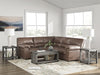 Modern comfort never looked so good. Sporting supremely soft yet durable cushions accented with high-fashion jumbo stitching, this stunning sectional is the ultimate choice in comfortably cool, contemporary style. Its caramel-hued faux leather indulges with an upscale feel and wows like the real thing.