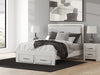 Details | Includes upholstered panel headboard, storage footboard, roll slats and platform rails , Made with engineered wood (MDF/particleboard/plywood) and decorative laminate for the right balance of affordability and durability , Matte white finish with subtle replicated wood grain, Decorative laminate replicates natural or man-made material surfaces with consistent color, pattern and texture , Polyester upholstery , Chrome-tone and glitter accents, Large-scale chrome-tone handles with faceted details, 2 smooth-gliding drawers , Drawer interiors are lined with a faux linen laminate for a clean, finished look , Bed does not require additional foundation/box spring; accommodates most zero clearance adjustable bases with the addition of a bunkie board, Mattress available, sold separately, Minor assembly required | |